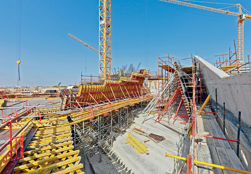 | Dodávateľ debnenia: PERI Zhotovovateľ: spoločnosť Ed. Züblin AG, Abu Dhabi Stenové nosníkové debnenie: VARIO GT 24 Oporné rámy: SB Stropné nosníkové debnenie: Multiflex Stropné stojky: PEP Podperné veže: PD 8 |