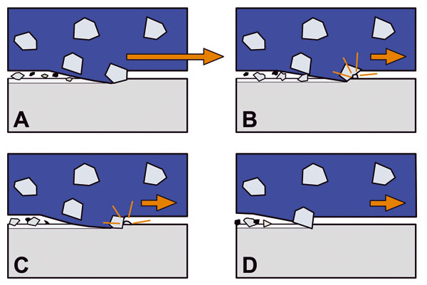 A. Diamantový nástroj nereže, ale frézuje. Počas postupu kotúča v mieste rezu sa na čele a na bokoch segmentu  postupne odhaľujú jednotlivé diamantové kryštály, ktoré sú zodpovedné za frézovanie. Každý diamant je počas práce podporený hmotou spojiva (bezprostredne za diamantovými kryštálmi), ktorá posilňuje väzbu.