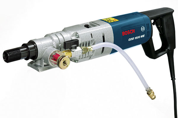 Bosch GDB 1600 WE je diamantová vŕtačka vhodná na vŕtanie namokro do armovaného betónu. Prívod vody zabezpečuje chladenie diamantových segmentov. Prístroj je použiteľný na stacionárne vŕtanie i na vŕtanie voľnou rukou. Vŕtačka má plynulý rozbeh a plynulá je aj regulácia otáčok. Teplotná poistka spolu s mechanickou spojkou zabezpečuje ochranu pred preťažením.