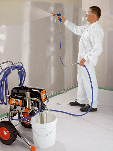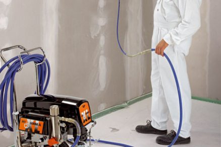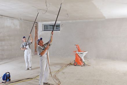 Strojové nanášanie disperzných stierok Stroj Knauf PFT Samba XL
