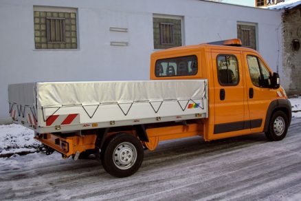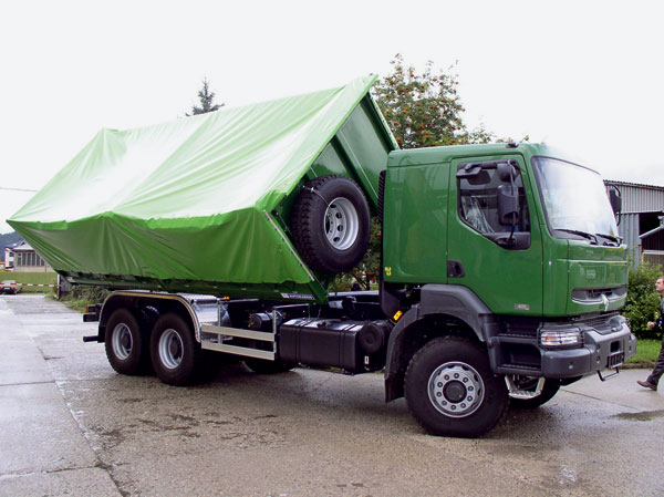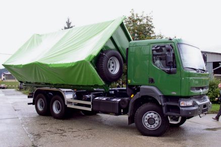| Trojstranný sklápač s mechanizmom odklápania bočníc | Správne zaplachtovanie korby pre prevoz sypkého materiálu |