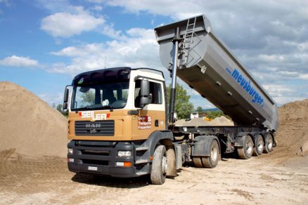 - valníky a sklápače – a to aj s prívesmi (na prevoz zeme, drviny, štrku, piesku atď.),