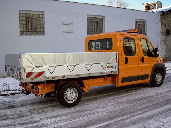 Na prevoz sypkého a stavebného materiálu slúži nadstavba, ktorá sa skladá zo základného oceľového rámu, korby a hliníkových alebo oceľových bočníc. Zdvíhanie zabezpečuje hydraulický valec. Ako pohon valca môže slúžiť elektrohydromotor, pomocný náhon od prevodovky vozidla alebo ručná hydraulická pumpa.