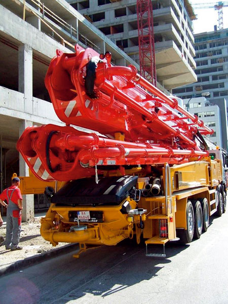 Moderné automobilové čerpadlá betónu disponujú výložníkmi s vertikálnym dosahom od 16 do 70 metrov. Najnovšie technológie umožňujú jednoduché a plynulé ovládanie pohybu výložníka pomocou rádiového diaľkového ovládania, čím sa zabezpečí presné ukladanie betónu priamo do stavebných konštrukcií.