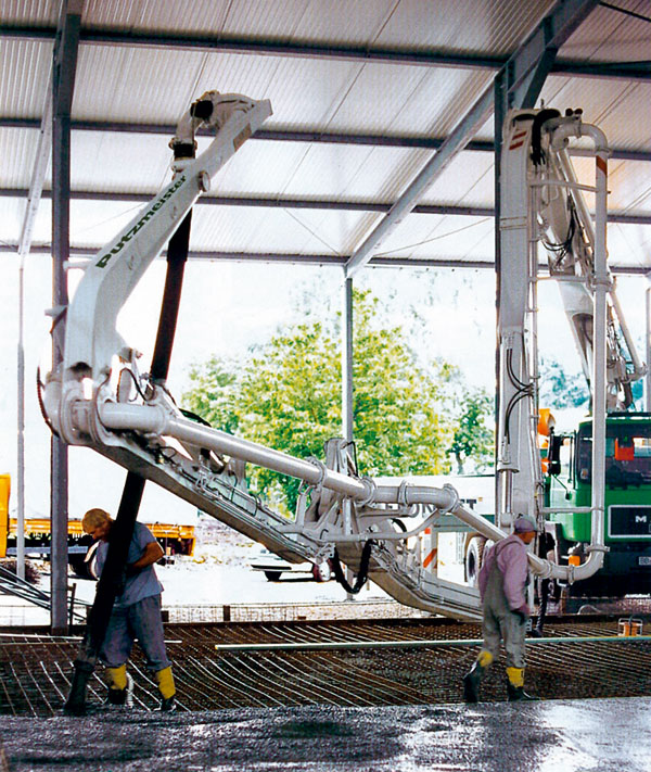 Na zabezpečenie betonáže v obmedzených priestoroch sa používajú tzv. halové vyhotovenia výložníkov s nižšou potrebnou výškou na ich rozloženie. Majú zvyčajne 4 alebo 5 ramien, ktorých dĺžky a uloženie sú navrhnuté tak, aby sa dosiahla čo najlepšia kinetika výložníka bez mŕtvych zón. Rozložiť ich možno už od svetlej výšky priestoru 3,9 m. Možnosť práce čerpadla a jeho výložníka priamo v hale odstraňuje potrebu čerpania betónu cez samostatné (prídavné) dopravné potrubie, čo podstatným spôsobom urýchľuje proces výroby betónových podláh a minimalizuje nároky na ľudskú prácu.