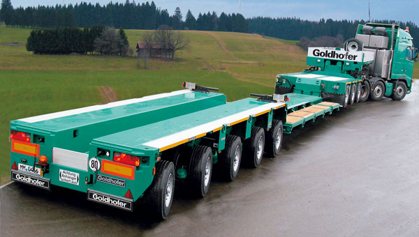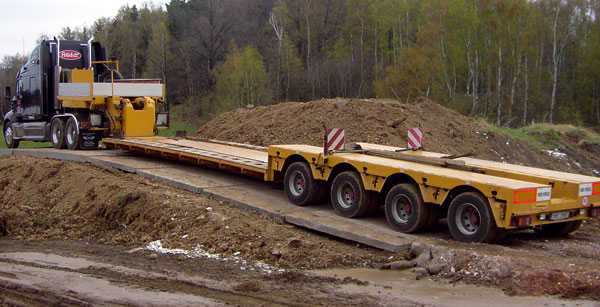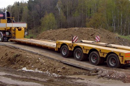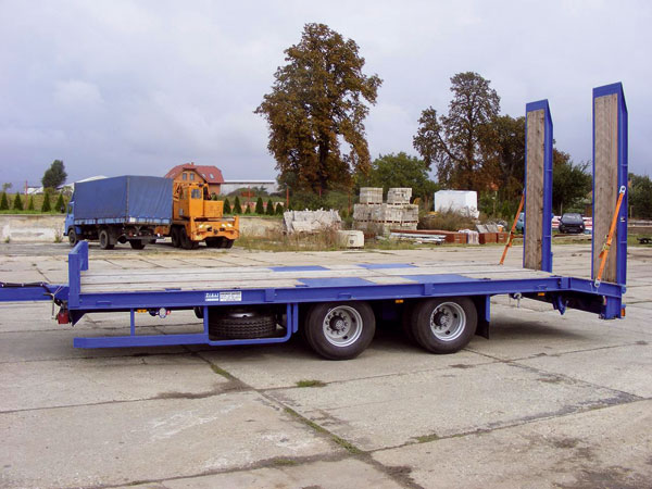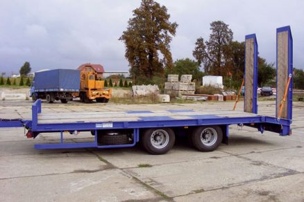 | Príklady dvoch plošinových návesov na prevoz stavebnej techniky alebo nadrozmerných nákladov | ||