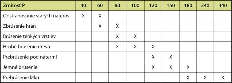 Brúsne pásy, papiere a plátna sa väčšinou označujú podľa zrnitosti písmenom P od najjemnejších (P400) až po tie najhrubšie (P20). Číslo označuje mernú veľkosť zrna podľa jeho šírky v určitom rozsahu (napr. P100 označuje strednú zrnitosť so zrnami od 160 do 125 mikrometrov). Najhrubšie zrno je určené pre práce, pri ktorých sa vyžaduje najväčší úber – odstraňovanie starých náterov a hrdze, naopak, najjemnejšie brúsne pásy sa používajú na dokončovacie práce – prebrúsenie laku a podobne.