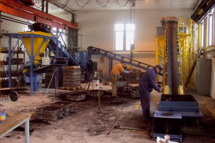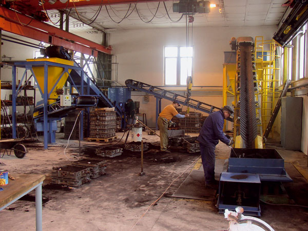 | Technologická linka na odlievanie hliníkových odliatkov do piesku pomocou štyroch pásových dopravníkov a premiešavacích síl | Systém pásových dopravníkov s obslužnými lávkami a krytovaním |