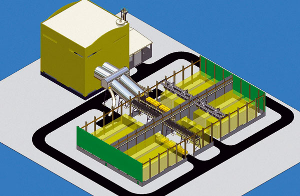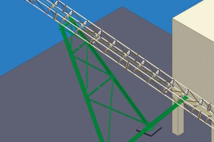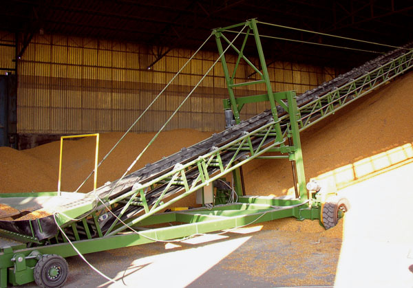 | Pohyblivý 22-metrový, naskladňovací pásový dopravník s diaľkovým ovládaním a možnosťou pohybu do všetkých smerov | 20-metrový pásový dopravník a oceľová konštrukcia podpier |