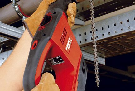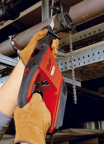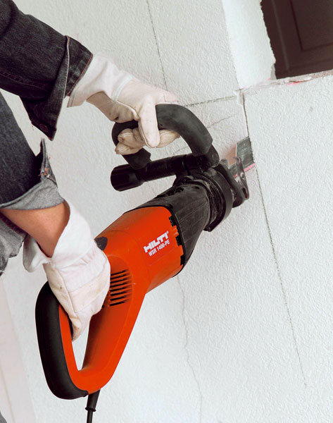 | Chvostová píla WSR 900-PE s príkonom 900 W, s 900 až 2 700 kmitmi so šesťnásobnou elektronickou reguláciou a revolučnou mäkkčenou rukoväťou pri rezaní rúrok pomocou rúrkového adaptéru (Hilti) | Chvostová píla WSR 1400 PE s príkonom 1 400 W, hmotnosťou 4,5 kg, šesťnásobnou reguláciou kmitov pri rezaní polystyrénových zatepľovacích panelov (Hilti) |