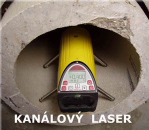 V prípade, že kanalizáciu je potrebné pripojiť z väčšej vzdialenosti, môže stavebná firma použiť špeciálny vodoodolný kanálový laser. Práca s kanálovým laserom je veľmi presná a jednoduchá. Prístroj sa osadí na začiatok kanálovej rúry, nasmeruje sa do výkopu a na displeji sa nastaví projektovaný spád. Oproti, na druhom konci výkopu sa osadí terč (pozri obr.). Prístroj po zapnutí vysvieti laserový lúč, ktorý sám automaticky vyhľadá terč. Laserový lúč udáva polohu na pokladanie kanalizačných rúr. Dosah kanálového lasera je asi 200 m. Na stavbách kanalizácie väčšieho rozsahu investor zväčša požaduje od dodávateľa nasadenie kanálového lasera, ktorý je zárukou, že pri kladení rúr nevzniknú „jamy“.