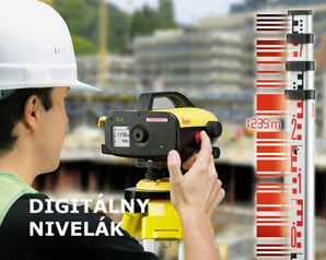 Významnou novinkou je však aj digitálny nivelačný prístroj, ktorý dokáže sám odmerať výšku, ale aj vzdialenosť. Princíp merania s digitálnym nivelačným prístrojom Leica SPRINTER je veľmi jednoduchý: prístroj nasmerujete na digitálnu nivelačnú latu s čiarovým kódom a potlačíte tlačidlo (pozri obr). Na displeji sa objaví výška, ale aj vzdialenosť až do 100 m. Hlavnou prednosťou digitálneho merania je vylúčenie chyby zo zlého odčítania nivelačnej laty, nakoľko prístroj meria automaticky. Cena digitálnych nivelačných prístrojov je už porovnateľná s optickými nivelačnými prístrojmi.