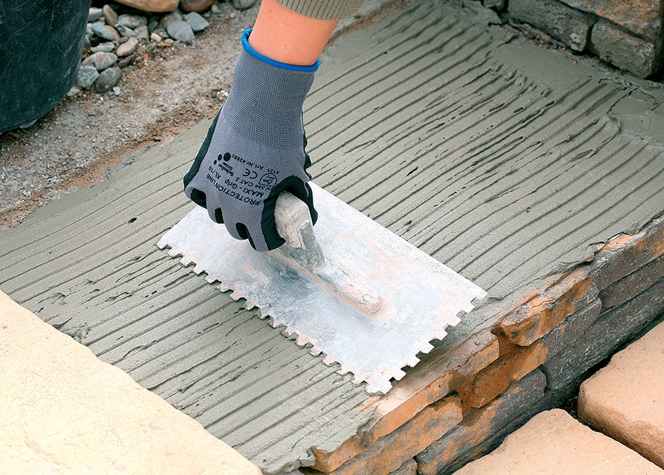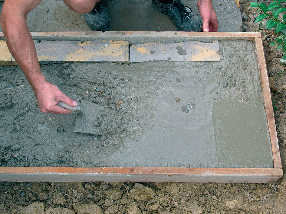 - Náradie a pomôcky: miešačka alebo fúrik na zarobenie betónu, nízkootáčkové elektrické miešadlo (500 ot./min.), murárska naberačka, murárska lyžica, vodováha, gumené kladivo, antikorové hladidlo, zubové hladidlo (veľkosť zuba 10 až 12 mm), plastová nádoba, rýľ, molitanové hladidlo alebo handrička