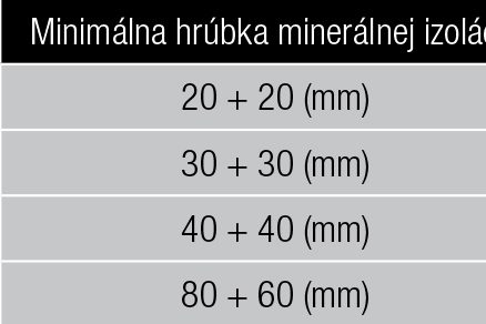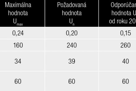 Tab. 1 Orientačné hrúbky izolácie na dosiahnutie jednotlivých úrovní hodnôt súčiniteľa prechodu tepla