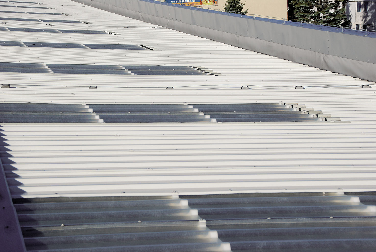 Druhým príkladom je strešná krytina výrobnej haly s presvetľovacími panelmi z polykarbonátových dosiek (PCB) alebo panelov. Je vytvorená kombináciou plechových sendvičových panelov kotvených na oceľových nosníkoch a spomenutých PCB profilov. Spojeniu materiálov a izolácii proti vode je venovaná dostatočná pozornosť, ale pohyb osôb po povrchu nie je regulovaný ani obmedzený žiadnymi ochrannými opatreniami. V prípade údržby odvodňovacích prvkov musia pracovníci vstupovať na povrch a pri odstraňovaní snehu v zimných mesiacoch určite nedokážu rozlíšiť priestor s dostatočnou pevnosťou. Výsledkom je priame ohrozenie života a zdravia osôb pohybujúcich sa po strešnom plášti prepadnutím cez „krehký“ povrch polykarbonátových presvetľovacích panelov. Navrhovaným opatrením je vytvorenie chránených priechodov okolo PCB dosiek (zábradlia) a informovanie pracovníkov.