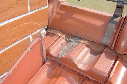 | Použitie nedovolených materiálov na utesnenie úžľabia. Pravdepodobnosť zatekania, nižšia životnosť detailu | Zlepenie prasknutej škridly silikónom je absolútne nefunkčné a veľmi krátkodobé. Oprava je drahšia ako nová škridla |