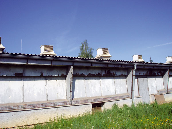 Možno konštatovať, že strešný plášť na objektoch (H1 až H10) odchovne prasiat je celkovo nefunkčný. Vláknocementová vlnitá krytina, ktorá bola na nefunkčný strešný plášť osadená v rokoch 1999 až 2000, je vplyvom vlhkosti a následne aj biologickým narušením neprípustne znehodnotená a neplní svoju funkciu.