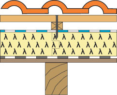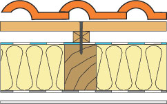 2. Perforácia doplnkovej hydroizolačnej vrstvy kotvením, tepelná izolácia na báze minerálnej vlny medzi krokvami