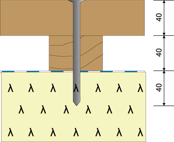 Kontralaty sa do krokiev kotvia zvyčajne zápustkami alebo klincami, a to cez poistnú hydroizoláciu, ktorá sa tým perforuje (obr. 2 a 3). Pri zateplení PIR doskami nad krokvami sa perforuje aj tepelná izolácia (obr. 4). Poistná hydroizolácia sa perforuje zároveň aj pri kotvení strešných lát. Laty sa pripevňujú vo vzdialenostiach približne 30 až 35 cm. Ak sa použijú strešné laty 40 × 60 mm a kontralaty 40 × 60 cm, poistná hydroizolačná vrstva je prepichnutá vždy. Tieto miesta sa bežne neutesňujú, čo má za následok zatekanie vody do izolačného súvrstvia. Kotviaca hĺbka klincov by mala predstavovať 2/3 dĺžky klinca. Pri hrúbke laty 40 mm je kotviaca hĺbka 80 mm (obr. 5 a 6). Bežne sa používajú klince s dĺžkou 100 mm, v takomto prípade je kotviaca hĺbka 60 mm. Podľa nemeckých predpisov, ktoré upravujú pravidlá na pokrývanie striech, má byť rozmer kontralaty 60 × 80 mm. A z toho vyplýva odpoveď na otázku nevyhnutnosti použiť dodatočné tesnenie pod kontralatami.