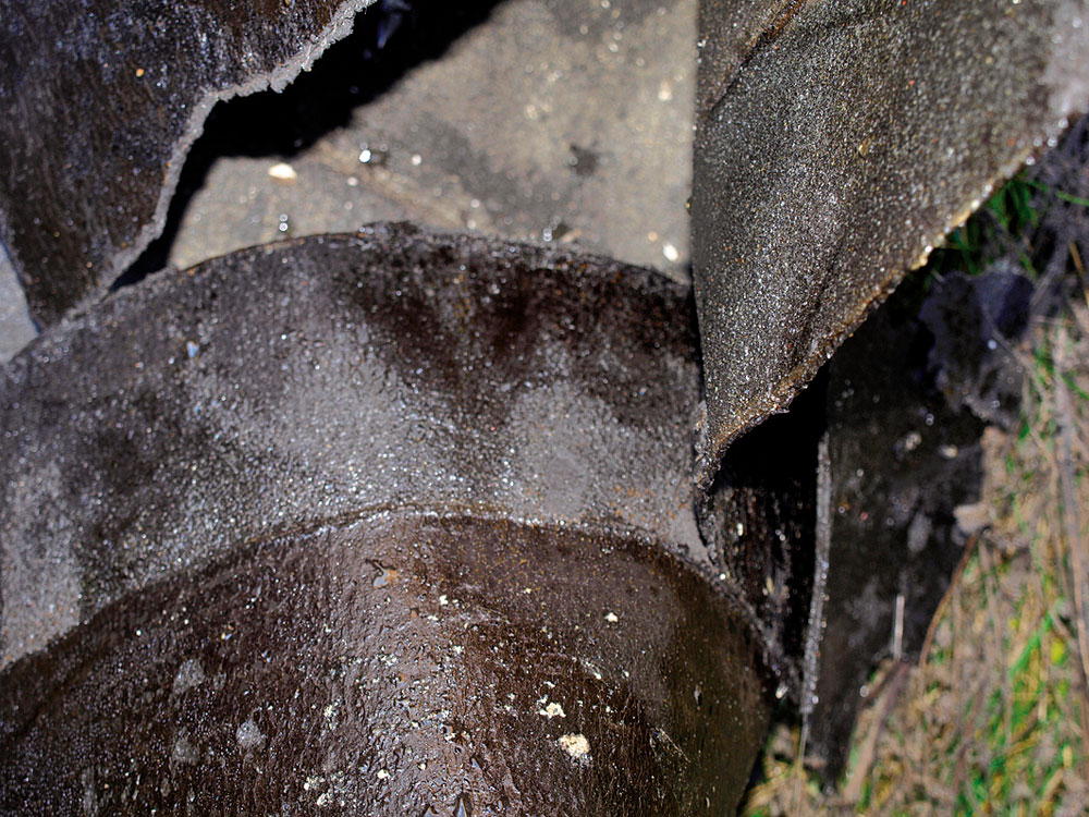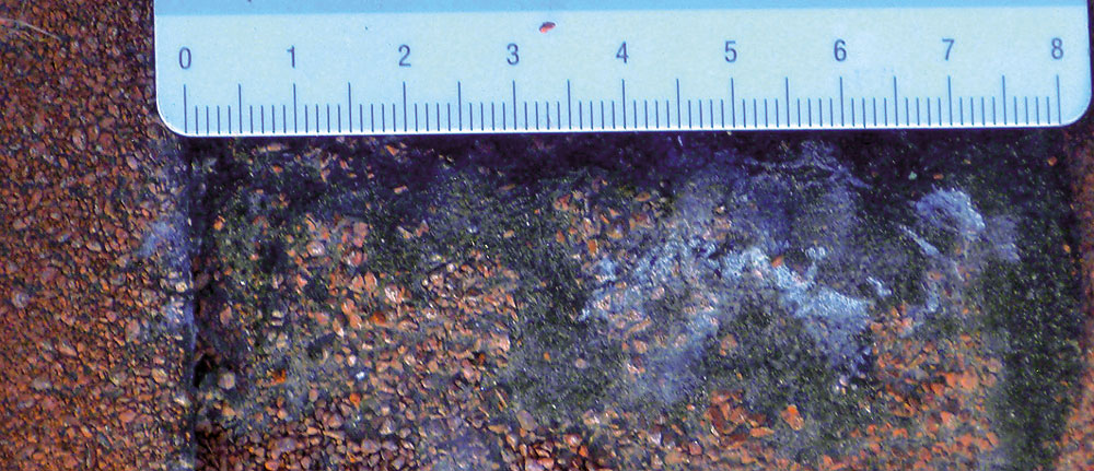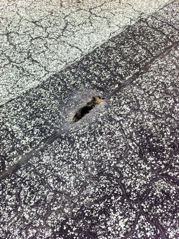 Obr. 7  Stekanie asfaltu na vodorovnej ploche, výsledkom ktorého je diera