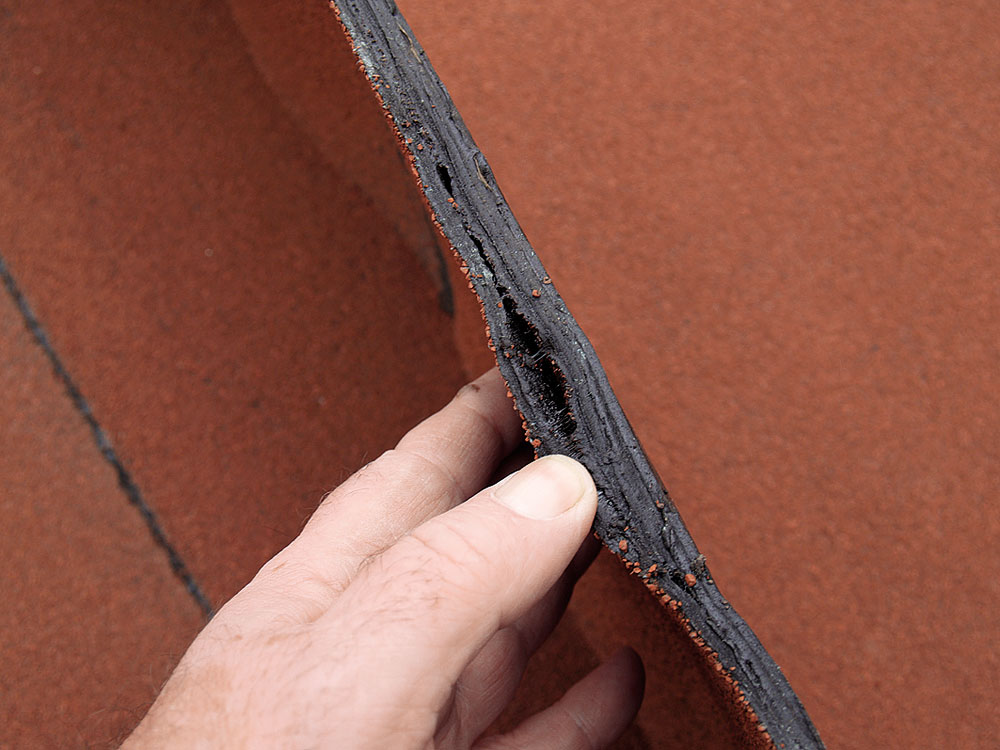 Skúmanie práce remeselníka, prečo sa mu jeden pás natavuje lepšie ako druhý, je úplne zbytočné, pretože bez dôkladného rozboru asfaltu sa nikam nedostaneme. Veľkú časť asfaltovej zmesi tvoria plnivá (zvyčajne ide o desiatky percent, optimálne zloženie je 15 až 30 %, maximálne 50 %). Tu majú výrobcovia opäť príležitosť výslednú zmes „finančne vylepšiť“. Namieste je otázka ako. Odpoveď na ňu by mohla byť: Čo sa kontroluje z listinných podkladov výrobcu? Predsa hmotnostný percentuálny podiel daného materiálu. Množstvo plniva sa už nekontroluje. Plniva s nižšou objemovou hmotnosťou tak možno pridať viac ako plniva s vyššou objemovou hmotnosťou. Medzi základné plnivo sa zaraďuje vápencová, čadičová alebo bridlicová múčka a ako úplne nové plnivo sa používa elektrárenský popolček. Ten má približne o 25 % nižšiu objemovú hmotnosť ako tradičné plnivá, a preto ho môže byť v asfaltovej zmesi viac. Od toho potom závisí výsledné správanie sa asfaltovej zmesi pri dosiahnutí maximálneho povoleného hmotnostného percenta. Výsledkom je problematická spracovateľnosť pri natavovaní. Nižšia cena odpadového materiálu – elektrárenského popolčeka – v porovnaní s tradičnými plnivami je zrejmá. Prvé pokusy o nahradenie plniva sú známe už zo 60. rokov minulého storočia, keď sa do horúceho asfaltu zamiešal popolček. Asfaltované pásy na strechách po určitom čase „zvodnateli“ a do strešnej konštrukcie začalo zatekať (obr. 10 a 11).