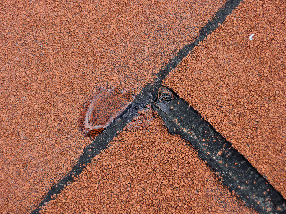 Obr. 13  Porucha asfaltovaného pásu po natavení v dvoch pruhoch