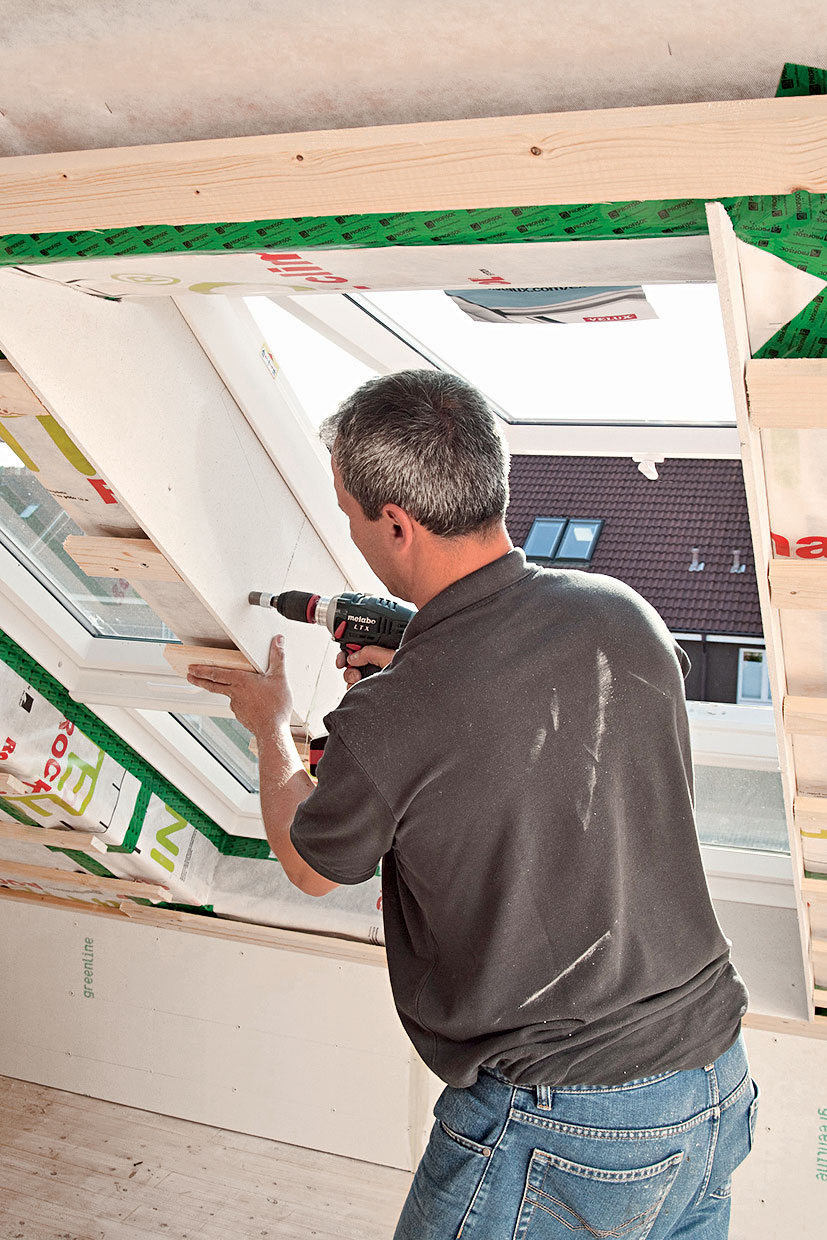 Okenné špalety sa obkladajú zalícovanými kusmi. Bez ochrany hrán vznikne stabilný pravouhlý roh. Zalícované kusy sa pripevnia rýchloreznými skrutkami použitím elektrického skrutkovača alebo pozinkovanými sponkami vytvrdenými živicou.