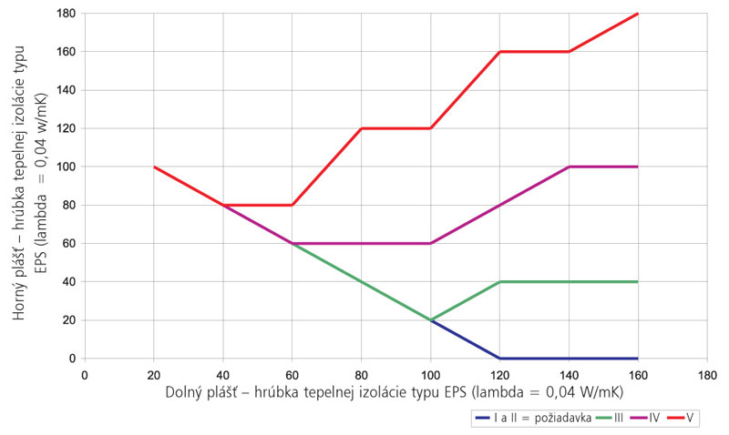 Graf 2 Potrebná hrúbka novej vrchnej tepelnej izolácie v závislosti od hrúbky spodnej pôvodnej tepelnej izolácie