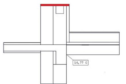 Zaujímavým faktom je, že horizontálne ukončenie atiky tepelným izolantom (obr. 10) nemá zásadnejší vplyv na vnútornú povrchovú teplotu v rohu miestnosti. V tomto prípade má atika minimálnu výšku. Treba zdôrazniť, že toto zistenie je platné pre takto vyhotovený detail. V prípade inej hrúbky izolácií, skladby atikovej steny, výšky atikovej steny môže byť situácia iná.