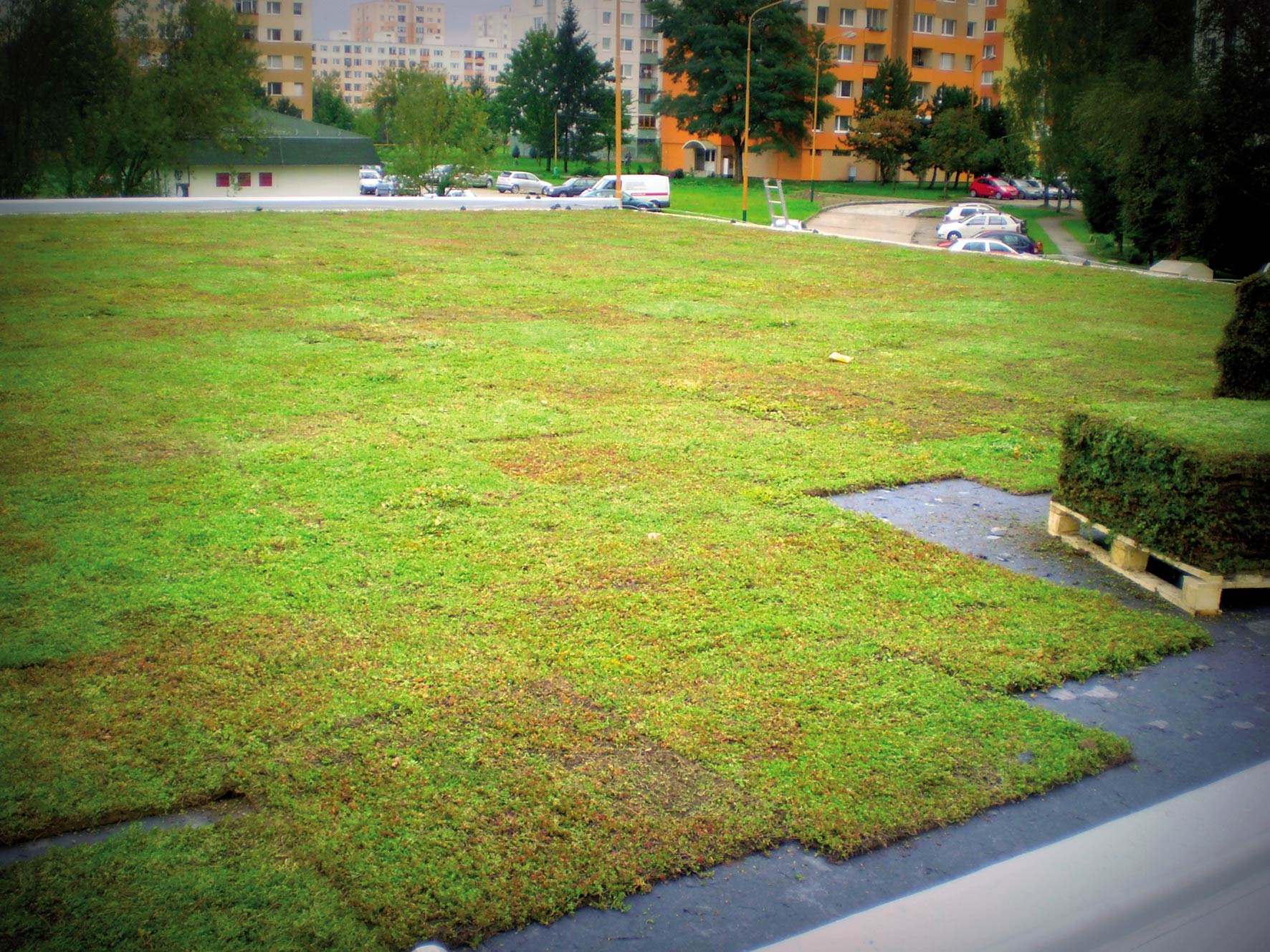 Extenzívne vegetačné strechy sa stávajú trendom najmä v mestách, ktoré čelia úbytku zelene. Ide o inovatívny urbanistický prvok, ktorý je ekologický a pôsobí veľmi esteticky. Kus zelene medzi bytové domy vniesla strecha nových dvojposchodových veľkogaráží na sídlisku Solinky v Žiline. Na budovu realizátor inštaloval približne 900 m2 extenzívnej vegetačnej strechy. Išlo o komplexný systém Zelená strecha Icopal, ktorý si investor vybral pre jeho inovačný charakter a fakt, že neobsahuje žiadny strešný substrát. Hmotnosť celej skladby je tak štyrikrát menšia (iba 55 kg/m2) v porovnaní s klasickou skladbou so substrátom. Preto si nevyžaduje navrhovanie staticky náročných konštrukcií a je vhodná aj na rekonštrukcie.