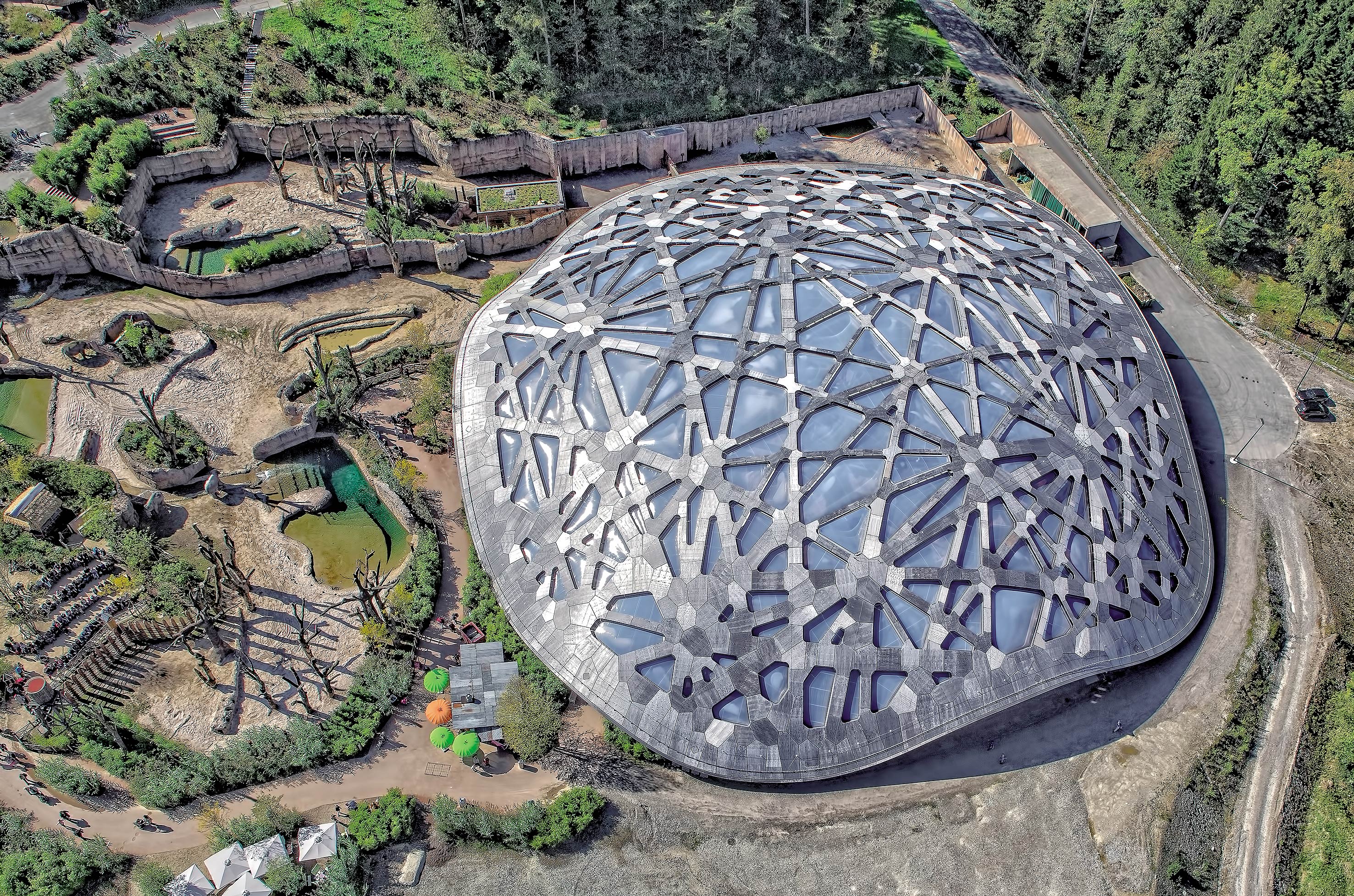 Sloní park v zoologickej záhrade v Zürichu je výnimočný nielen dizajnom, ale aj spôsobom, akým sa o slony starajú. Rastúca slonia rodina má teraz šesťkrát viac miestností ako pred výstavbou. Areál zahŕňa množstvo rôznych bazénov a spŕch vnútri aj vonku, pričom ďalšou novinkou je nepretržitá starostlivosť o zvieratá v „chránenom kontakte“. To znamená, že chovatelia už nie sú v rovnakej miestnosti ako slony. Centrálnym miestom slonieho parku s plochou 11 000 m2 je unikátny sloní dom s rozlohou 6 800 m2. Ide o budovu s priemerom 80 m a mnohotvárnou drevenou strešnou konštrukciou s hmotnosťou viac ako 1 500 ton. Konštrukcia plochej strechy nevyžaduje žiadne ďalšie oporné stĺpy vo vnútri. Využíva prirodzené svetlo prichádzajúce cez 271 strešných okien, aby napodobnila výhľad na oblohu v lese a evokovala prirodzené prostredie slonov v Thajsku.