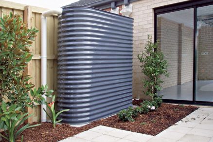 | Obr. 3 Nádrž umiestená v rámci dispozície podzemného podlažia | Obr. 4 Nadzemná nádrž zrážkovej vody [8] |