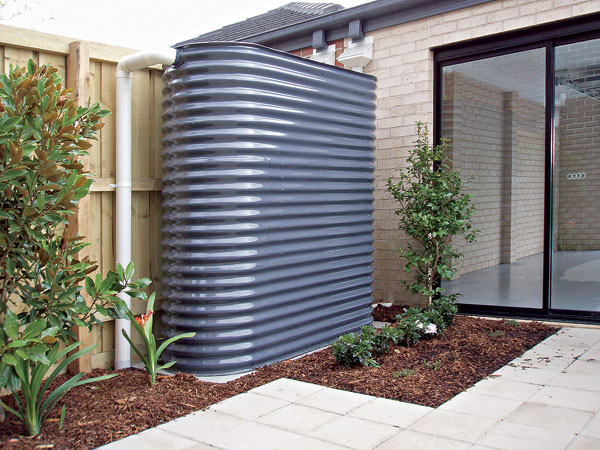 Nadzemná nádrž sa umiestňuje zvyčajne v tesnej blízkosti budovy, ktorá sa bude zásobovať zrážkovou vodou (obr. 4). Výhodou pri tomto type nádrže je jej ľahká obsluha, dostupnosť, monitorovanie a údržba. Nevýhodou sú priestorové nároky dané najmä požadovanou veľkosťou, resp. objemom nádrže. Takisto je v tomto prípade možný prístup zvierat a hmyzu a do úvahy prichádza aj vystavenie slnečnému žiareniu a pôsobeniu teploty vonkajšieho prostredia.