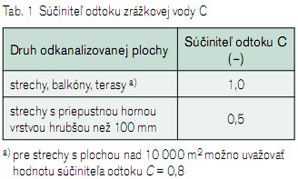 Tab. 2 Výdatnosť dažďa pre kanalizačné systémy so žľabmi