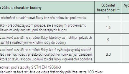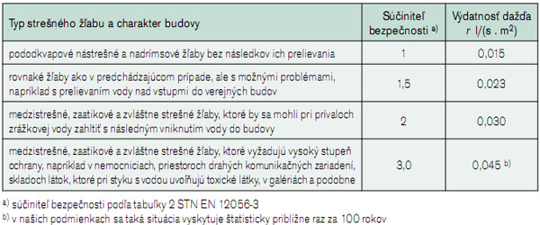 Pri odkanalizovaní budov pomocou žľabov sa uvažuje výdatnosť dažďa podľa miery možného ohrozenia objektu, ktorú zohľadňuje súčiniteľ bezpečnosti.