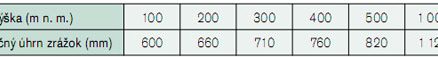 Tab. 3 Závislosť ročného úhrnu zrážok od nadmorskej výšky