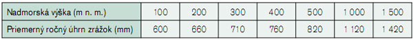 - množstva a druhu zrážok,