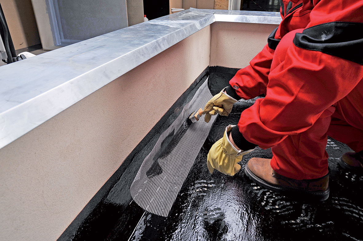 - Náradie a pomôcky: dechtová kefa, pokrývačský štetec/kefa, štetec, striekacie zariadenie, nožnice, meter, špachtľa, ostrý nôž,