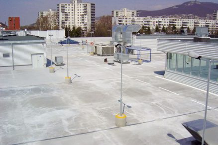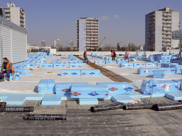 Pri návrhu a realizácii obchodných komplexov je dôležité riešiť i parkovanie pre zákazníkov. Ak okolitá výstavbaneumožňuje vybudovanie rozsiahlejších parkovísk v blízkosti stavby, možno na tento účel využiť aj strechy obchodnýchcentier. V takomto prípade sa môže pri návrhu strešných konštrukcií použiť systém strechy s opačným poradím vrstiev.