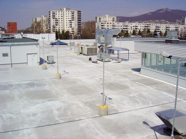 Plochá strecha s opačným poradím vrstiev ako parkovisko