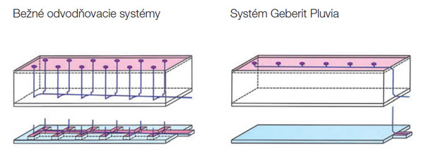 Jednoduchšie projektovanie, menej potrubíGeberit Pluvia zjednodušuje plánovanie budov a umožňuje optimálne využívanie priestoru vďaka nízkej náročnosti na plánovanie, menšiemu množstvu použitých potrubí a bezspádovému zbernému potrubiu. Menšie množstvo odpadových vedení znižuje potrebu pripojení do kanalizácie. Inštalácia Geberit Pluvia je výrazne výhodnejšia než konvenčné systémy odvodňovania striech.