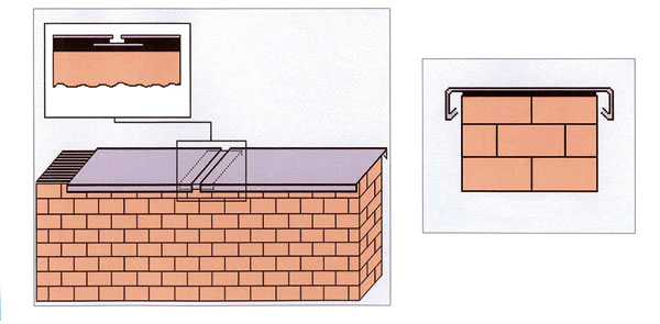 Na to sa používajú buď prefabrikované, alebo remeselne zhotovené profily. Oplechovanie má mať dostatočný sklon smerujúci ku streche. Stranu odvrátenú od strechy sa odporúča ukončiť koncovým pravouhlým ohybom. Oplechovanie sa ukončí koncovým prvkom alebo napájacím prvkom na stenu. Znečisteniu steny kvapkajúcou vodou však nemožno celkom zabrániť.