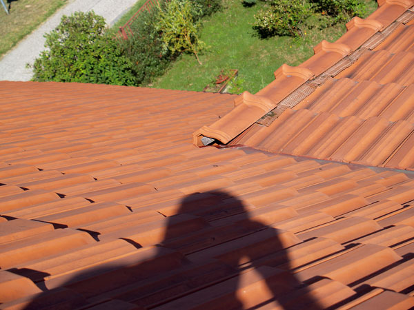 Po prehliadke strechy sa dal konštatovať nevydarený a nedoriešený detail prechodu strechy nad vikierom s nižším sklonom na šikmejšej časti konštrukcie (obr. 5). Remeselník stál pred problémom, ako vyriešiť ukončenie krytia nárožia s vlastnou strechou, ale výsledok napovedá, že sa úlohou v podstate nezaoberal.