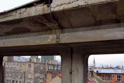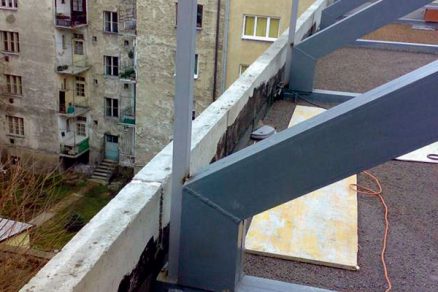 | Nosná oceľová konštrukcia votknutá do stropnej dosky vytvára nezaizolovateľný tepelný most. | Takýto otvor na inštalácie je značne problematickým miestom. | |