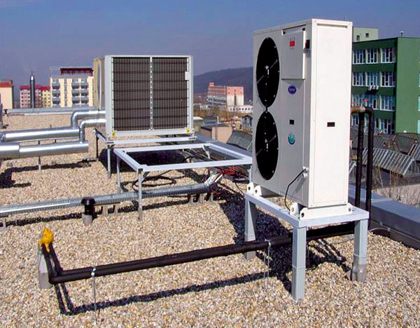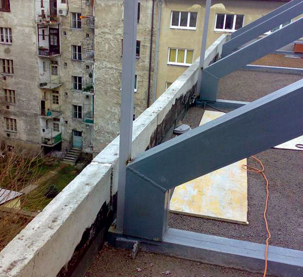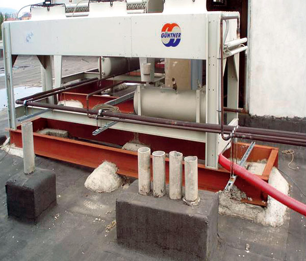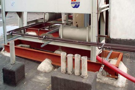 | Podbetónovaná nosná konštrukcia pod klimatizačné jednotky môže byť len dielom vysokej neprofesionality… | … pritom riešenie je celkom jednoduché. (Na izoláciu sú však vhodnejšie stojky z oceľových rúrok.) |