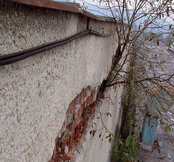 | Dlhodobo zatekajúci strešný plášť vytvoril priestor na osobitý druh vegetačnej fasády. | Vlhkosť v strešnom plášti je zdrojom deštrukcie pri jej zamŕzaní; dodatočné opravy sú veľmi nákladné. |