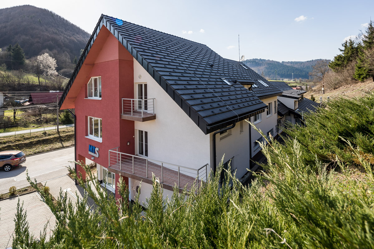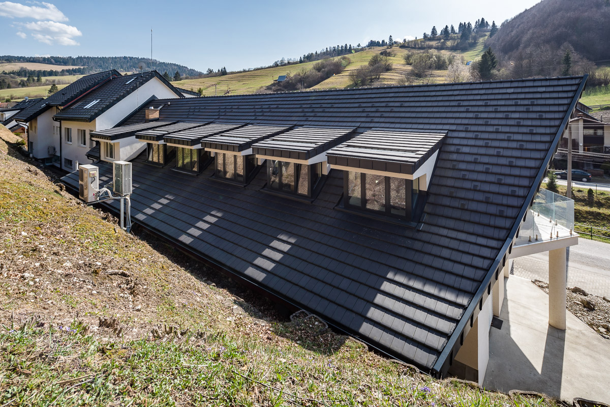 Plochá keramická škridla Figaro zaujme svojím hladkým povrchom. V povrchovej úprave čierna engoba a v kombinácii so svetlou omietkou pôsobí mimoriadne moderne. Zároveň však prirodzene zapadá do okolitého prostredia, kde nadväzuje na tradičnú architektúru šindľových striech. „S keramickou škridlou sme veľmi spokojní. Trvalo si udržiava farbu bez toho, aby na nej boli viditeľné akékoľvek znečistenia. Čierna farebnosť sa nijako neprejavuje na prehrievaní podkrovia,“ dopĺňa Juraj Habovštiak.