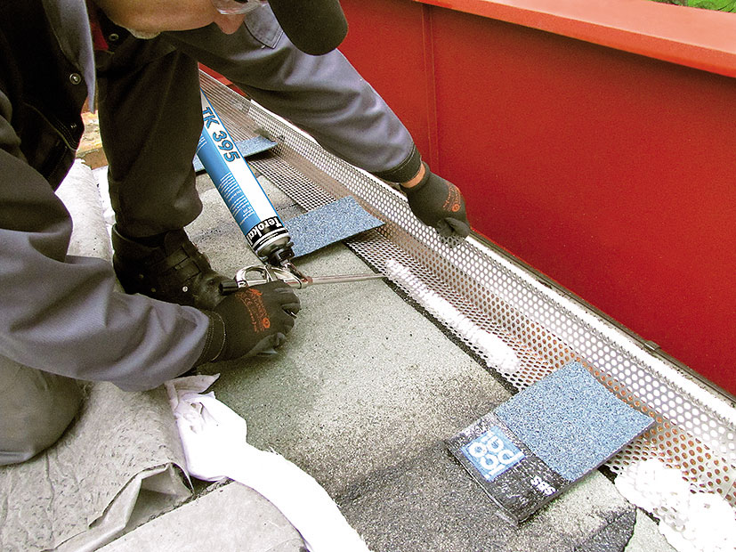 Následne sa fixujú prostredníctvom natavenia pruhov špeciálnych asfaltovaných pásov na strechu. Lišty majú zo strany odkvapu perforáciu, ktorá umožňuje odtok nadbytočnej zrážkovej vody z retenčnej vrstvy.