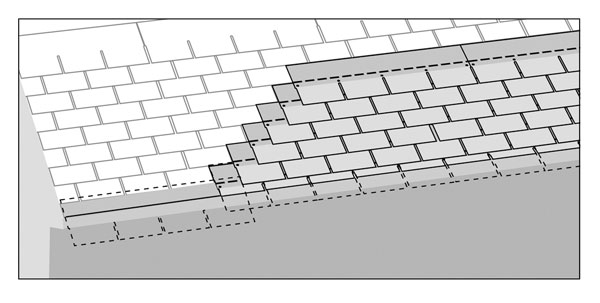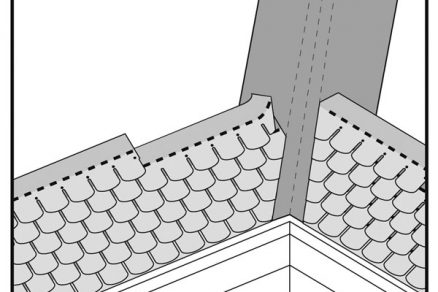 Následne sa postupuje ako pri renovácii šindľových striech. Príklad renovácie nešindľovej strechy použitím šindľov je na obr. 10.