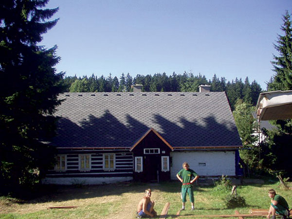| Obr. 10 Príklad renovácie nešindľovej strechy použitím šindľov | |